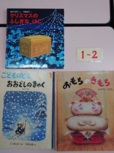 12月12日 1・2年生ひまわりさくらさんの読み聞かせがありました。二学期最後、今年最後の読み聞かせでした。クリスマスを前にクリスマスや冬の絵本が並びました。