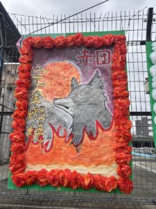 【6年生が書いた各団のパネルです。かっこ良くて素敵ですね!】