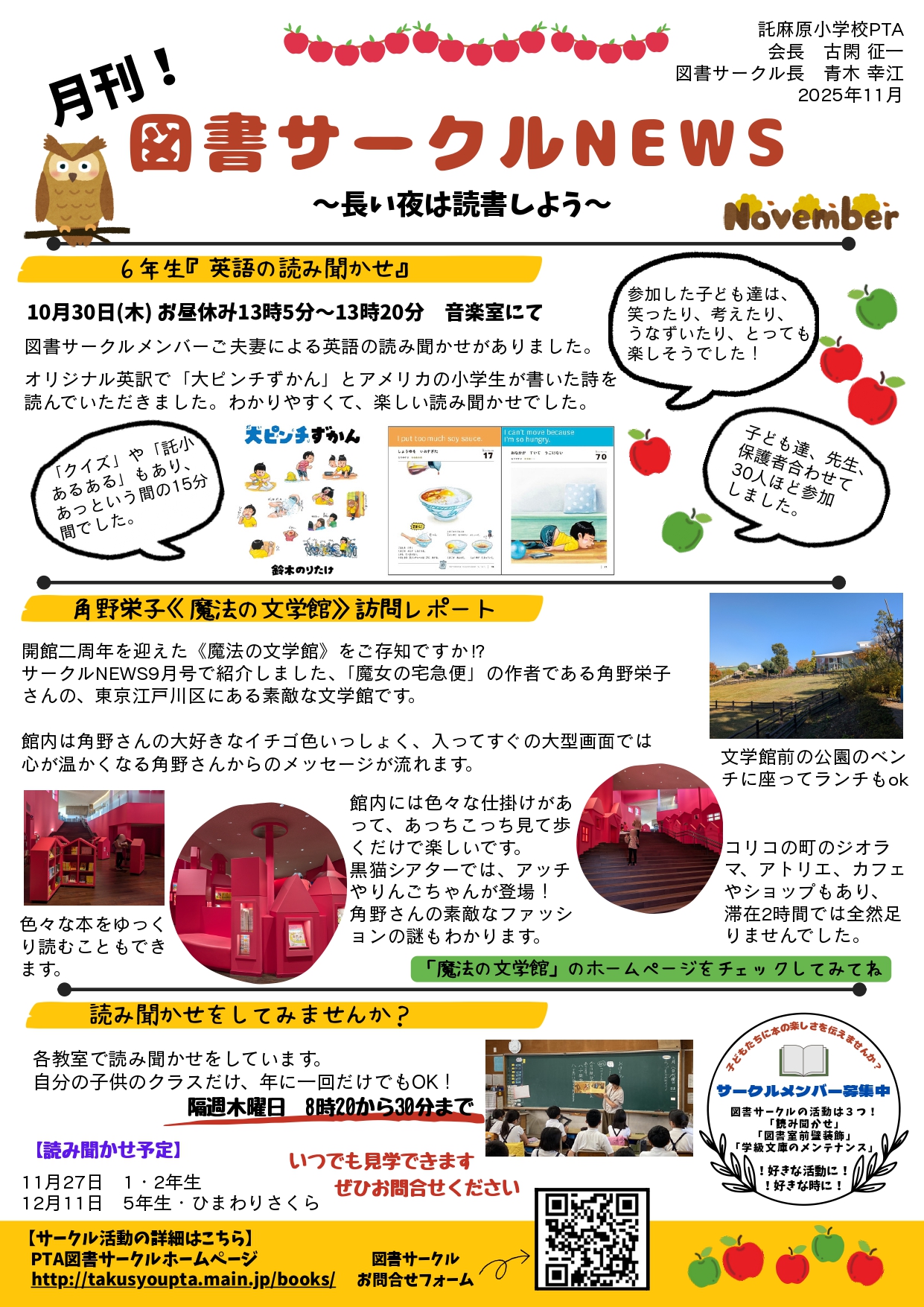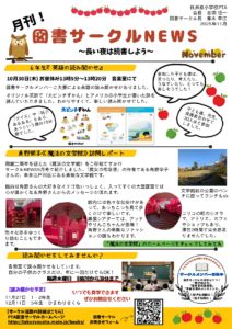 《図書サークルNEWS11月号》を作成しましたのでお送りいたします。